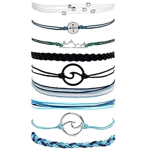 YANCHUN Aesthetic Bracelets for Teen Girls Surfer Waterproof Bracelets Anklets for Women Men (A:Blue &Black&Mountain Set)