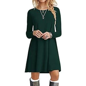DressesPOPYOUNG Spring Dresses for Women 2023 Long Sleeve T Shirt Dresses Casual Swing Dress M, Dark Green