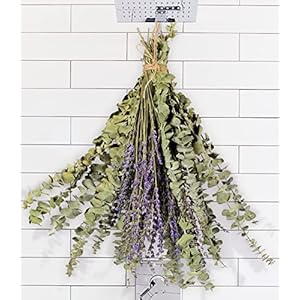 100% naturally dried plant – The product consists of 15 stems dried eucalyptus leaves and 1.6Oz (about 100 stems) dried lavender, length 15”-17”, please allow slight differences in size and quantity as it is a natural plant and measured and packaged by hand. The package is equipped with a rope for easy hanging in the bathroom. Fallen and crushed eucalyptus leaves and lavender can be made into sachets.SKU: n/a -