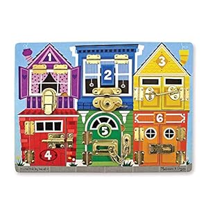 ENTERTAINING ACTIVITY PLAY BOARD: The Melissa & Doug Wooden Latches Board is an entertaining and educational activity play board that helps kids build dexterity as they navigate latches that hook, snap, click, and slide.
