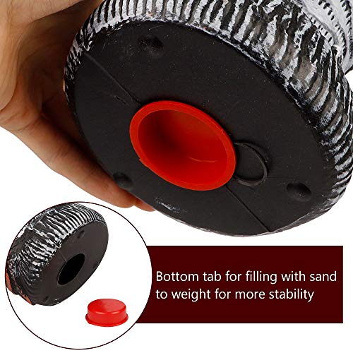 Unique Design: The head of our owl sculpture is connected to the body by spring, with a plastic fin on the back of the head, it will rotate when the wind blows and look lifelike. Bottom tab for filling with sand to weight for more stability. Can also easily placing the plastic owl on a stick or pole with the hollow bottom