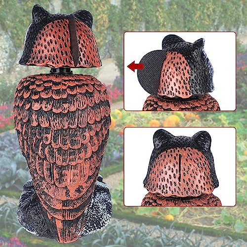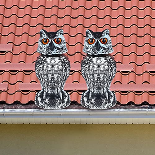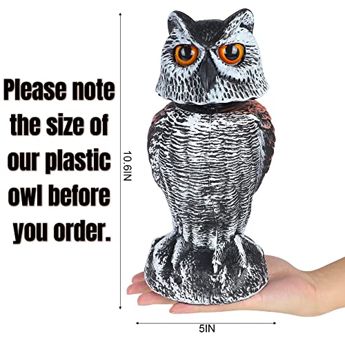 Hausse 2 Pack Fake Owl Decoy Bird Scarecrow Sculpture, Rotating Head Plastic Owl Bird Deterrents, Nature Enemy Horned Pest Repellent for Outdoor Garden Yard
