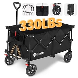 【MULTIPURPOSE】Our all terrain wagon is perfect for outdoor camping, family shopping, garden trolley, beach toys, fishing, sports and so on. Homgava wagon cart, release your backpack, travel light!
