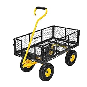 【REMOVABLE WHEELS】4 wheels of collapsible wagon are removable through pressing the little yellow buttons, which is especially designed for better cleaning and smaller storage space. When folding, the portable wagon without wheels reduces much storage volume. While unfolding, the utility wagon rolls smoothly as usual, since there are double bearings bulit in.