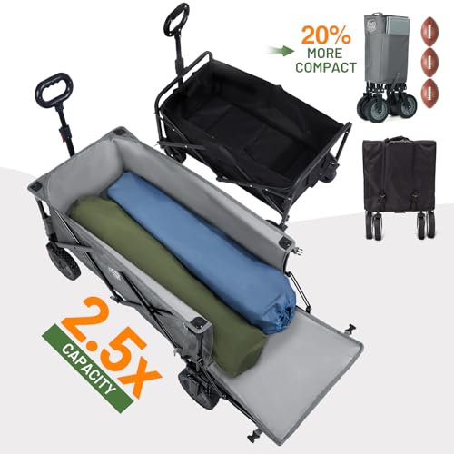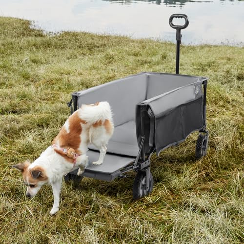 FOLDABLE TAILGATE FOR LARGER CAPACITY: Our collapsible folding wagon measures 49 “L x 18.9 “W x 21.5 “H. With a maximum storage capacity of 200L/7.7 cu.ft, there is 50% more storage space than in other carts of the same size. Not only can it hold longer items such as tents and canopy, it’s also dog and pet friendly, making it easy for them to get in and out.