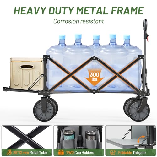 HEAVY DUTY STEEL: TIMBER RIDGE wagon cart adopts the stable design of 2 cross chassis and 25ร—12mm thickened high-strength metal frame, which is more stable and safer than other carts, and it can easily withstand 300 pounds.