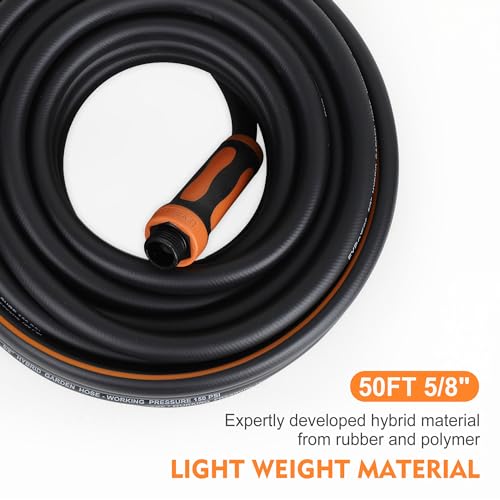 Hybrid Garden Hose 50ft x 5/8″ & 10-Pattern Adjustable Nozzle, Heavy Duty, Flexible, Lightweight, Kink Resistant Water Hose with Swivel Grip Handle