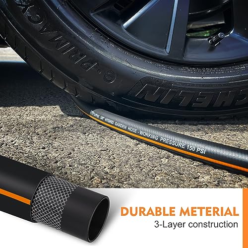 LIGHT WEIGHT MATERIAL – Expertly developed hybrid material from rubber and polymer, Lighter than traditional garden hoses making FYPower hose easier to carry and maneuver around the yard.